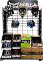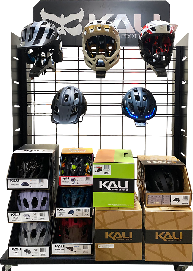- Display cart can hold any combination of hooks with display helmets or boxes with merchandise